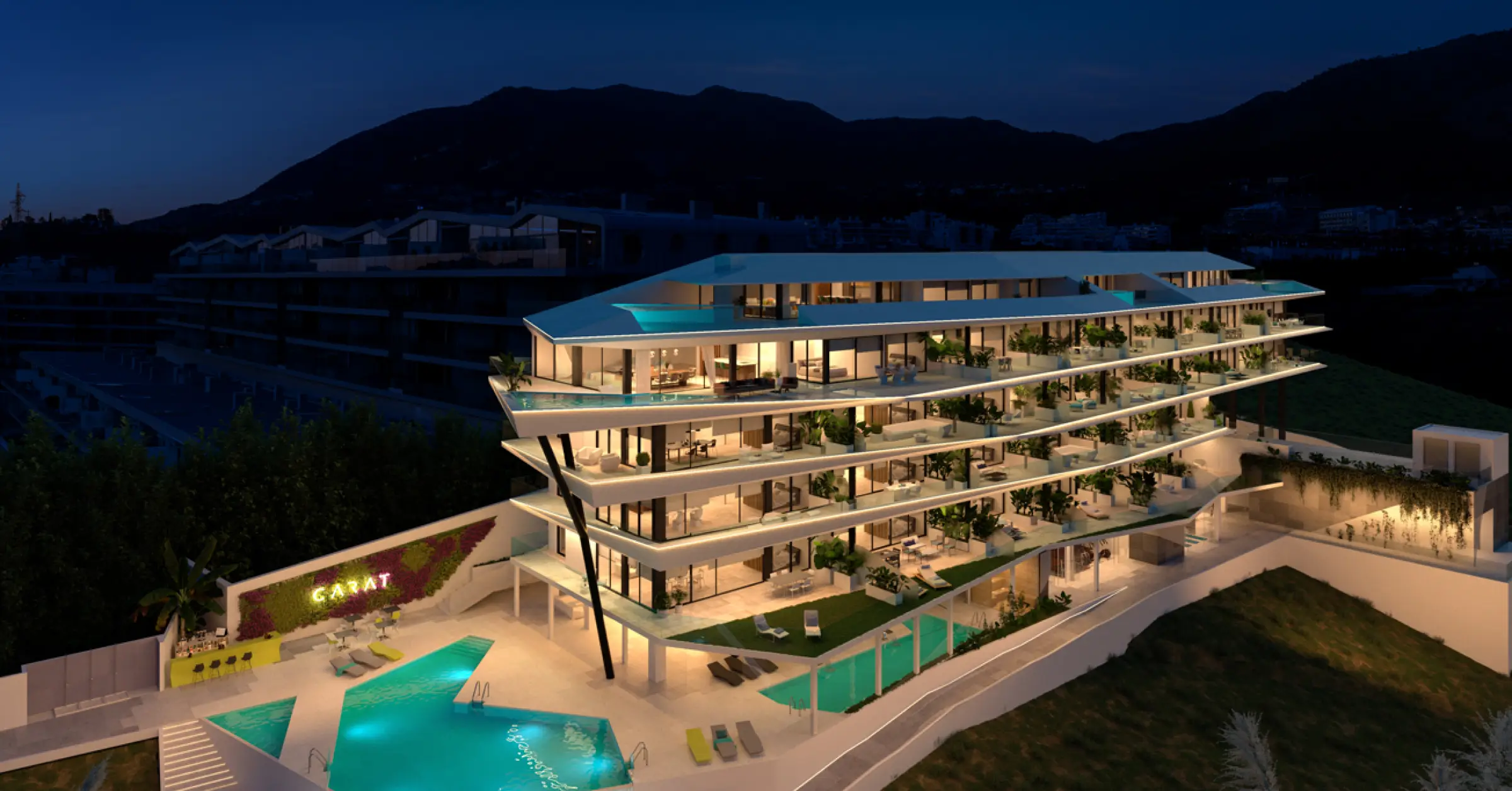 Carat es la culminación de Reserva del Higuerón, la joya de la corona, un diamante cuyas facetas dibujan las líneas arquitectónicas de los edificios sobre el Mar Mediterráneo.